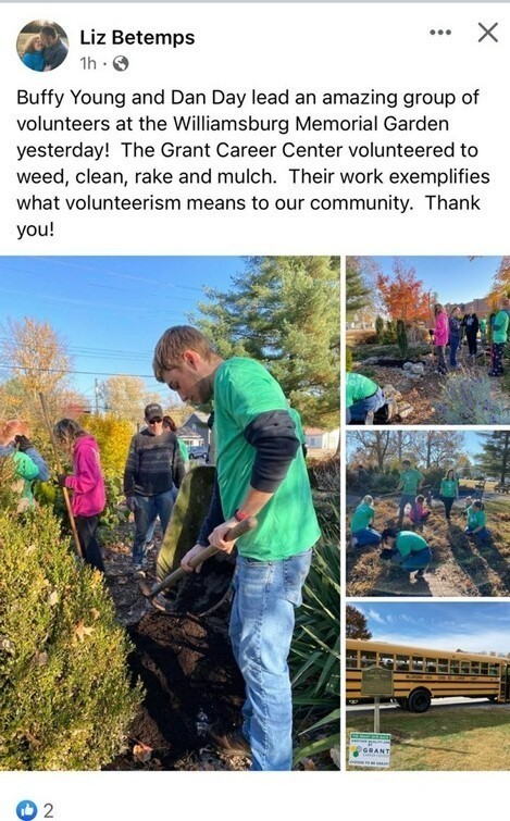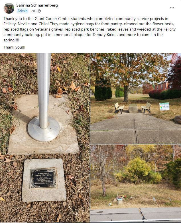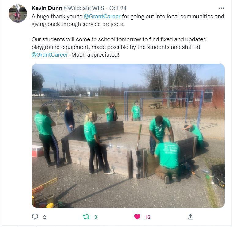 The Grant Career Center held its very first Service Learning Day, on Oct 24th which we call THE GRANT GIVE BACK. Over 300 students canvassed Southern Clermont County using their talents to paint, repair, build, and revitalize 30 public and private properties, while completing 61 projects in the school districts that Grant Career Center serves: Bethel-Tate Local Schools, Williamsburg Local School District, Felicity- Franklin Local School District, and New Richmond Exempted Village School District.
